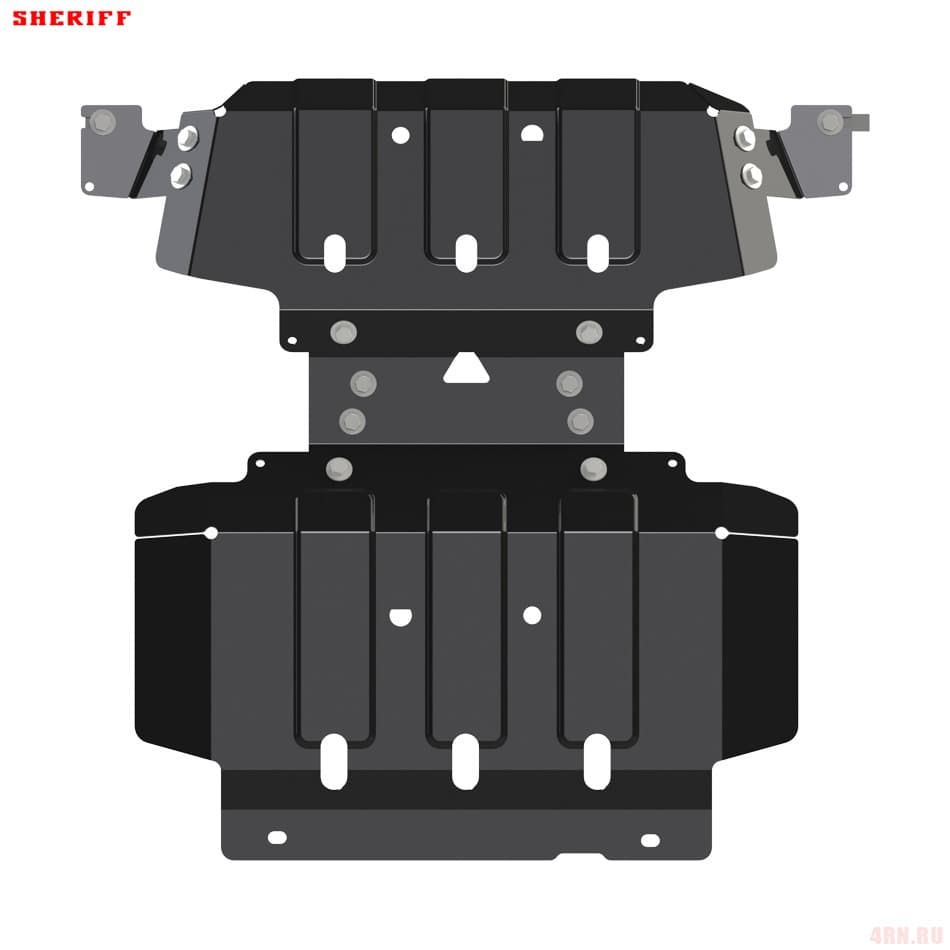 Защита картера Sheriff нужна для сохранности узлов и агрегатов, находящихся на днище авто. Она надежно защитит двигательный отсек вашей машины от повреждений. Также она защищает моторный отсек от влаги, грязи, и предусматривает наличие металлических крыльев, которые выполняют функцию пыльника.