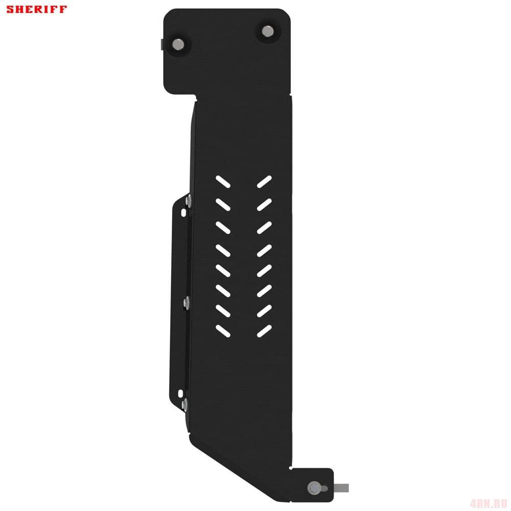 Защита картера Sheriff нужна для сохранности узлов и агрегатов, находящихся на днище авто. Она надежно защитит двигательный отсек вашей машины от повреждений. Также она защищает моторный отсек от влаги, грязи, и предусматривает наличие металлических крыльев, которые выполняют функцию пыльника.