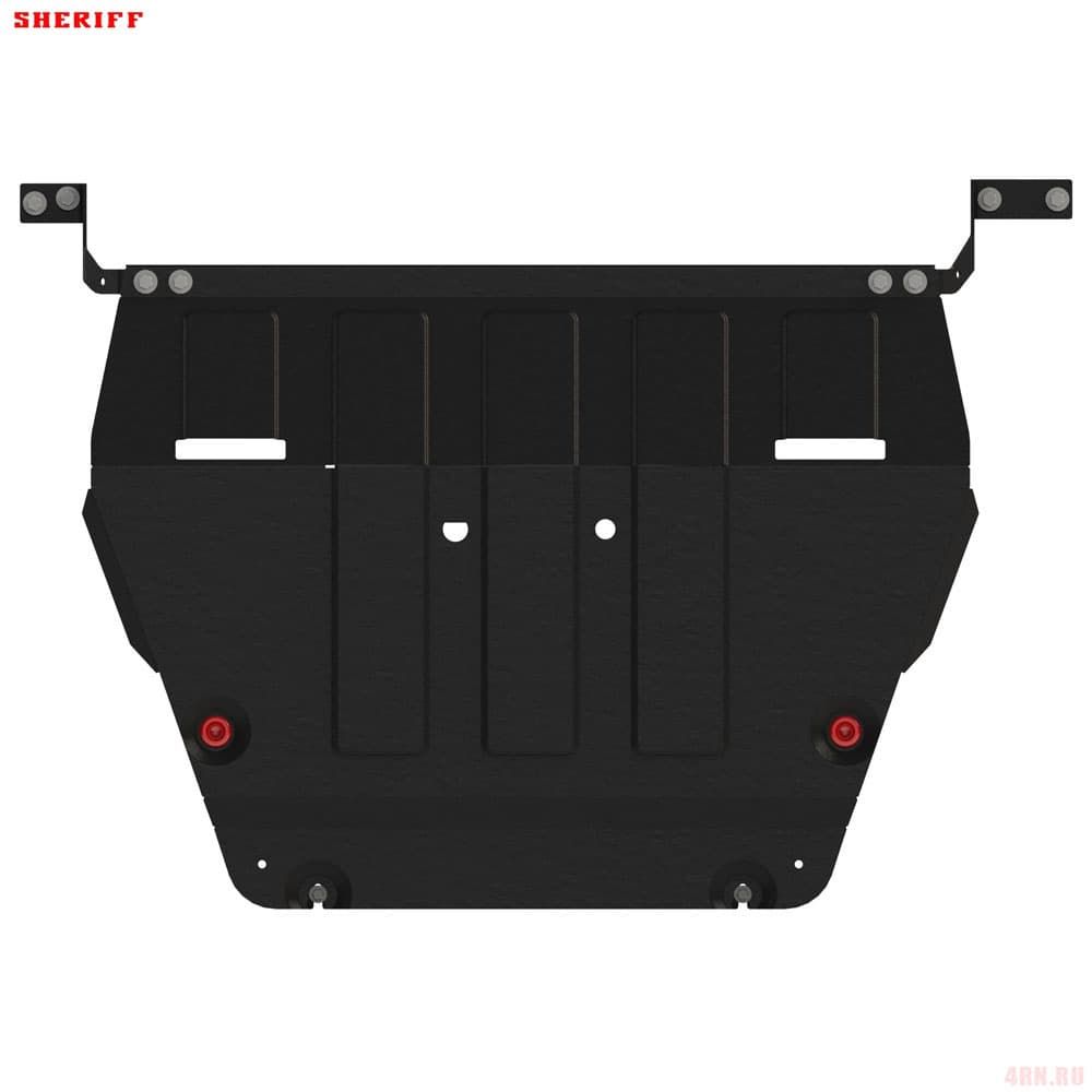 Защита картера Sheriff нужна для сохранности узлов и агрегатов, находящихся на днище авто. Она надежно защитит двигательный отсек вашей машины от повреждений. Также она защищает моторный отсек от влаги, грязи, и предусматривает наличие металлических крыльев, которые выполняют функцию пыльника.