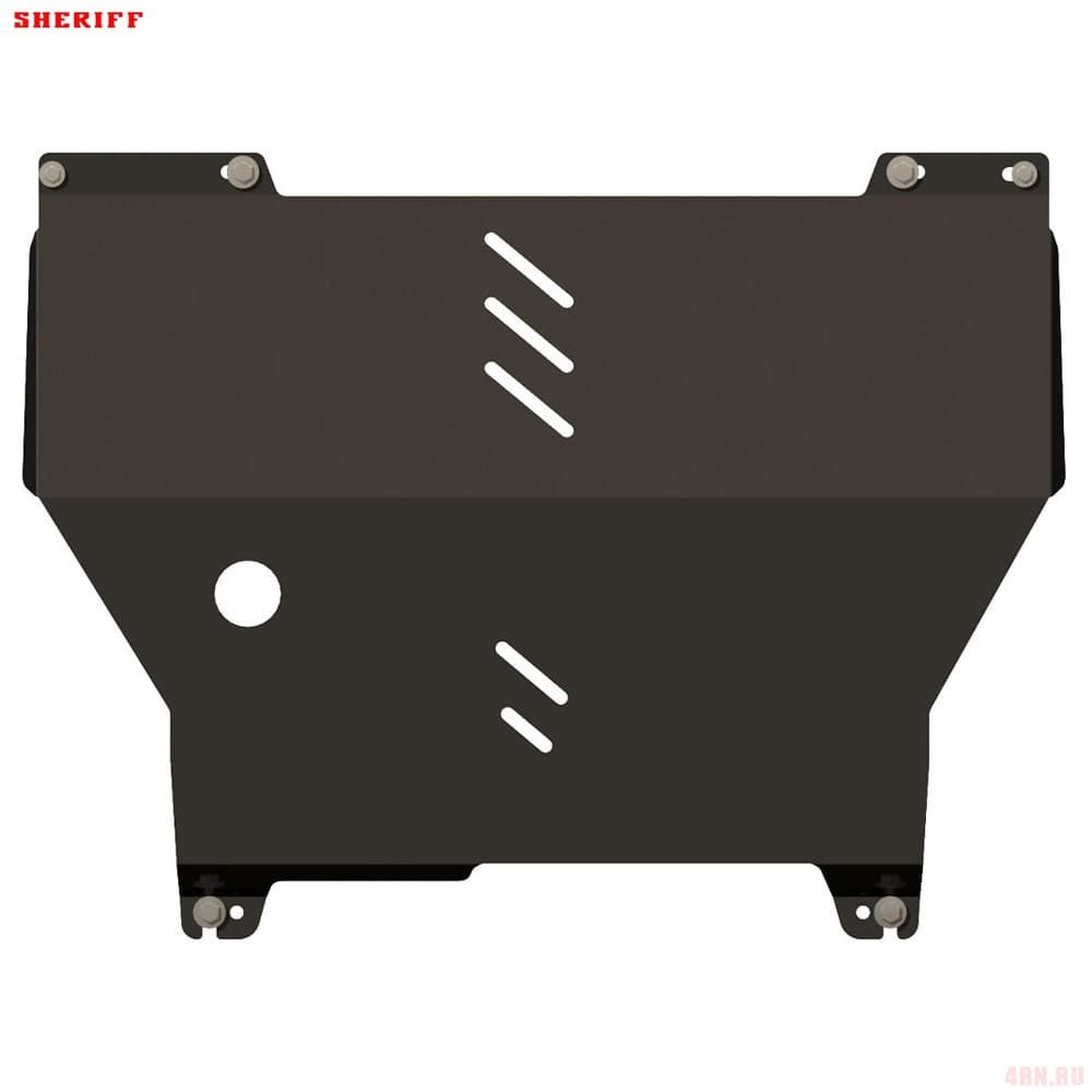 Защита картера Sheriff нужна для сохранности узлов и агрегатов, находящихся на днище авто. Она надежно защитит двигательный отсек вашей машины от повреждений. Также она защищает моторный отсек от влаги, грязи, и предусматривает наличие металлических крыльев, которые выполняют функцию пыльника.