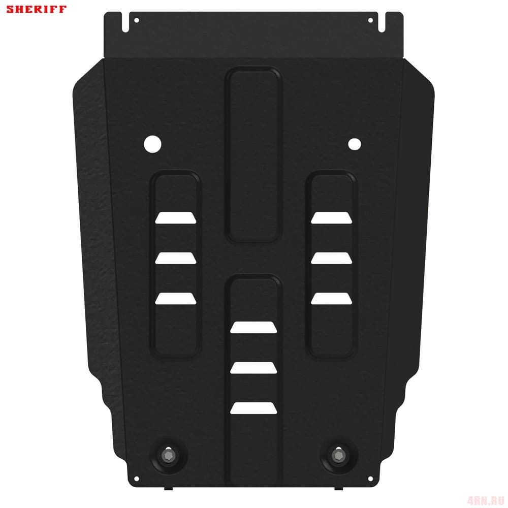 Защита картера Sheriff нужна для сохранности узлов и агрегатов, находящихся на днище авто. Она надежно защитит двигательный отсек вашей машины от повреждений. Также она защищает моторный отсек от влаги, грязи, и предусматривает наличие металлических крыльев, которые выполняют функцию пыльника.