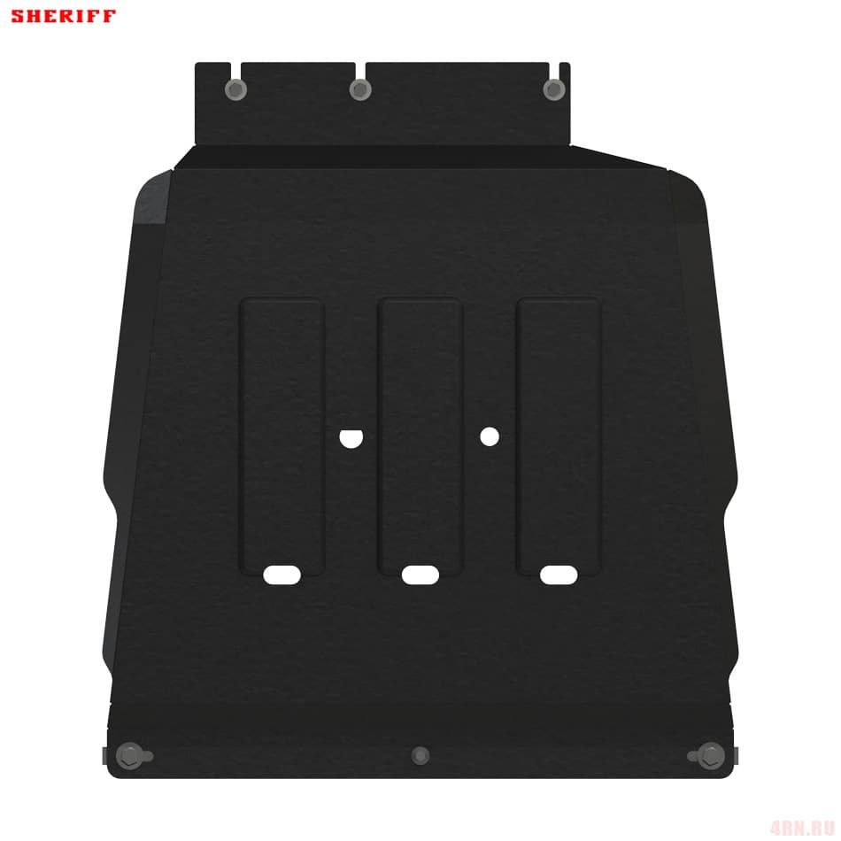 Защита картера Sheriff нужна для сохранности узлов и агрегатов, находящихся на днище авто. Она надежно защитит двигательный отсек вашей машины от повреждений. Также она защищает моторный отсек от влаги, грязи, и предусматривает наличие металлических крыльев, которые выполняют функцию пыльника.
