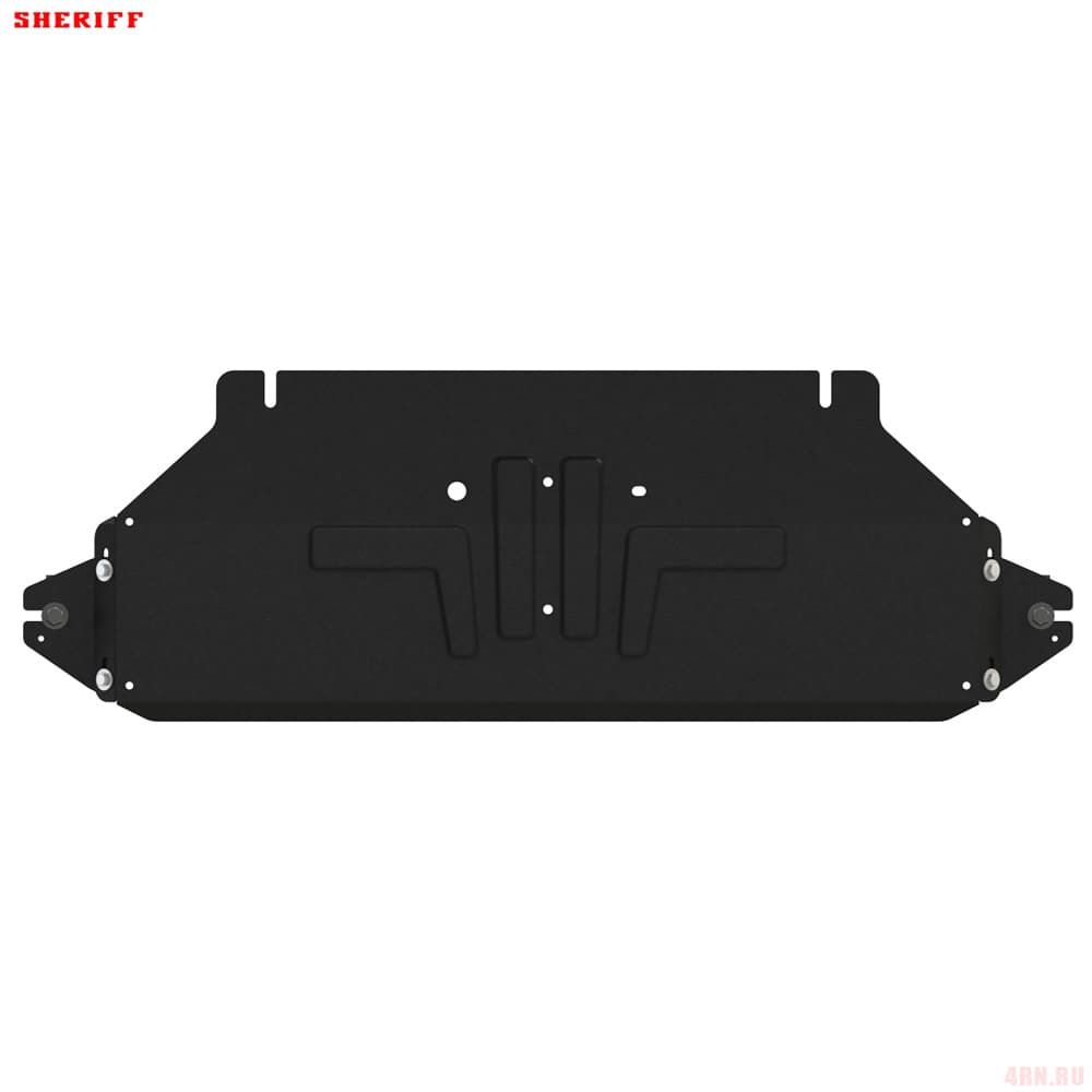 Защита картера Sheriff нужна для сохранности узлов и агрегатов, находящихся на днище авто. Она надежно защитит двигательный отсек вашей машины от повреждений. Также она защищает моторный отсек от влаги, грязи, и предусматривает наличие металлических крыльев, которые выполняют функцию пыльника.