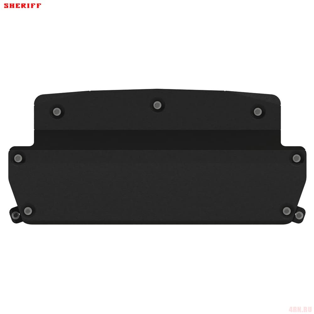 Защита картера Sheriff нужна для сохранности узлов и агрегатов, находящихся на днище авто. Она надежно защитит двигательный отсек вашей машины от повреждений. Также она защищает моторный отсек от влаги, грязи, и предусматривает наличие металлических крыльев, которые выполняют функцию пыльника.