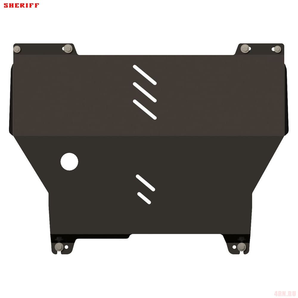 Защита картера Sheriff нужна для сохранности узлов и агрегатов, находящихся на днище авто. Она надежно защитит двигательный отсек вашей машины от повреждений. Также она защищает моторный отсек от влаги, грязи, и предусматривает наличие металлических крыльев, которые выполняют функцию пыльника.