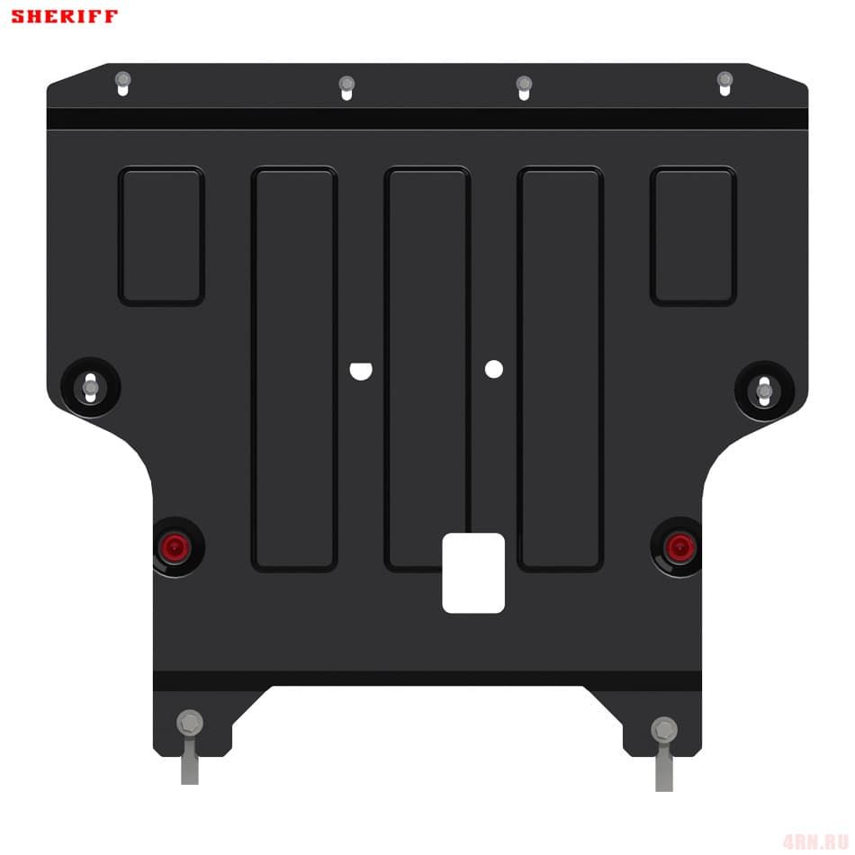 Защита картера Sheriff нужна для сохранности узлов и агрегатов, находящихся на днище авто. Она надежно защитит двигательный отсек вашей машины от повреждений. Также она защищает моторный отсек от влаги, грязи, и предусматривает наличие металлических крыльев, которые выполняют функцию пыльника.