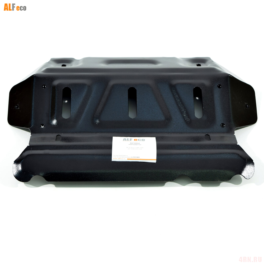 Стальная защита изготавливается из холоднокатаной стали толщиной 2,0-2,5мм, что является отличительной особенностью, нашим конкурентным преимуществом перед другими производителями, использующими более дешевую, горячекатаную сталь за частую не предназначенную для данного типа изделий. Потому как горячекатаная сталь сильнее подвержена коррозийным свойствам, структура данной стали не пластична, что критично сказывается при ударе.