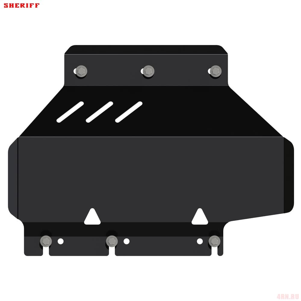 Защита картера Sheriff нужна для сохранности узлов и агрегатов, находящихся на днище авто. Она надежно защитит двигательный отсек вашей машины от повреждений. Также она защищает моторный отсек от влаги, грязи, и предусматривает наличие металлических крыльев, которые выполняют функцию пыльника.