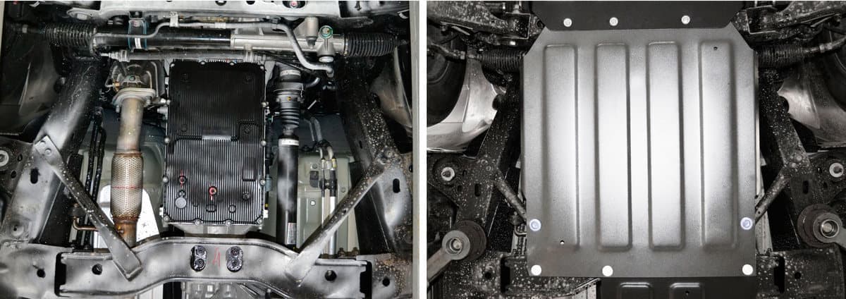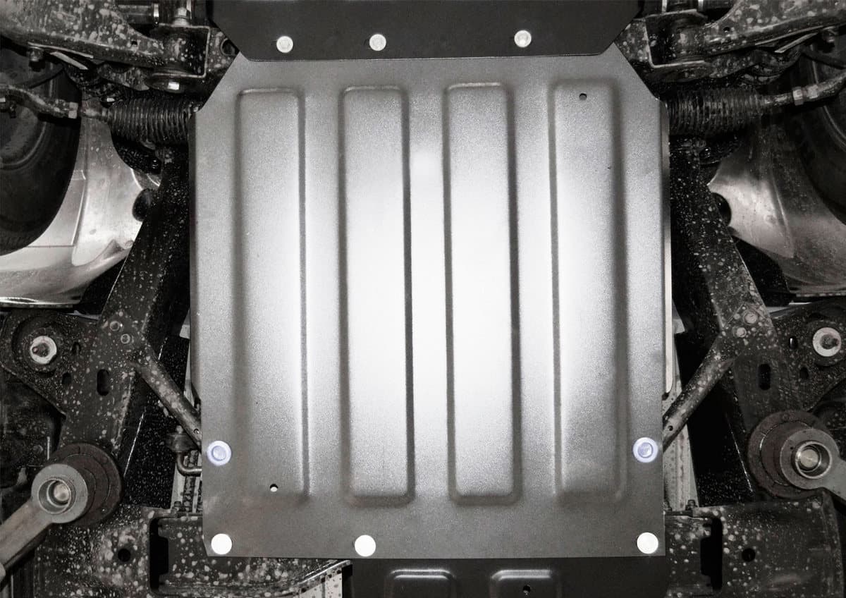 Стойкое порошковое окрашивание позволяет сохранить внешний вид, защитит от царапин, предотвратит коррозию. Также имеется утопленный крепеж для предотвращения срывов. Крепеж не образует с алюминием гальваническую пару. Защита спроектирована индивидуально для автомобиля, что позволяет устанавливать ее в штатные места без доработки кузова за 10 мин.