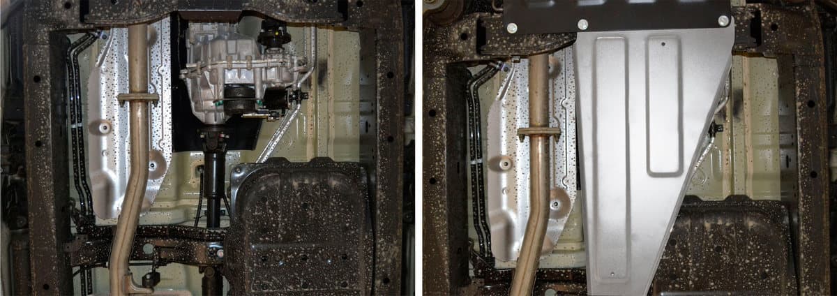 Стойкое порошковое окрашивание позволяет сохранить внешний вид, защитит от царапин, предотвратит коррозию. Также имеется утопленный крепеж для предотвращения срывов. Крепеж не образует с алюминием гальваническую пару. Защита спроектирована индивидуально для автомобиля, что позволяет устанавливать ее в штатные места без доработки кузова за 10 мин.