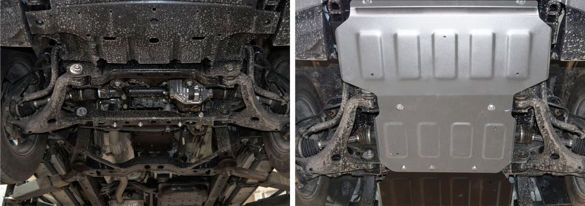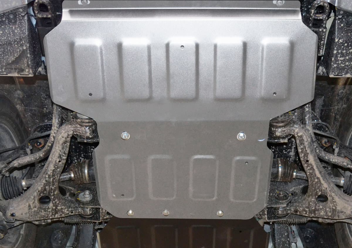 Стойкое порошковое окрашивание позволяет сохранить внешний вид, защитит от царапин, предотвратит коррозию. Также имеется утопленный крепеж для предотвращения срывов. Крепеж не образует с алюминием гальваническую пару. Защита спроектирована индивидуально для автомобиля, что позволяет устанавливать ее в штатные места без доработки кузова за 10 мин.