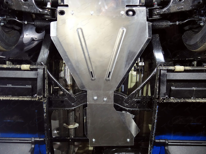 Алюминиевая защита коробки передач артикул ZKTCC00302 от российского производителя ТСС. Подходит для Киа Мохав 2017, 2018, 2019х годов выпуска. Защита состоит из одного листа и крепежа в комплекте Алюминия толщиной 4,0 мм достаточно для комфортного передвижения без опасений за автомобиль, вес ее 12 кг.
