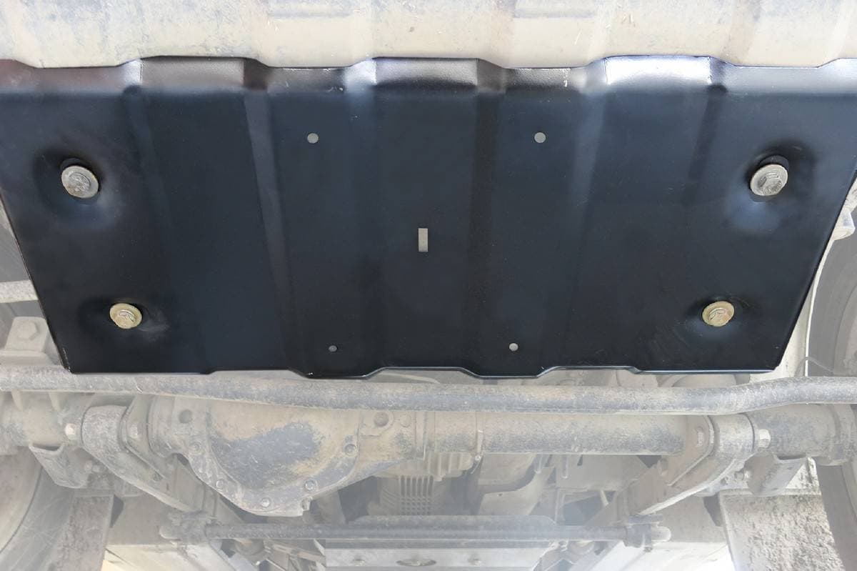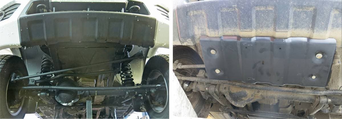 Порошковое окрашивание гарантирует долгий срок службы. А глубокий штамп увеличивает жесткость до 2,5 раз. Также имеется утопленный крепеж для предотвращения срывов. Качественная покраска защиты картера выдерживает 720 часов соляного тумана. Толщина изделия составляет 2-6 мм. Подштамповка в местах крепления предохраняет крепеж от срезания. Деталь спроектирована индивидуально для вашего автомобиля, что позволяет устанавливать ее в штатные места без доработки кузова за 10 мин.