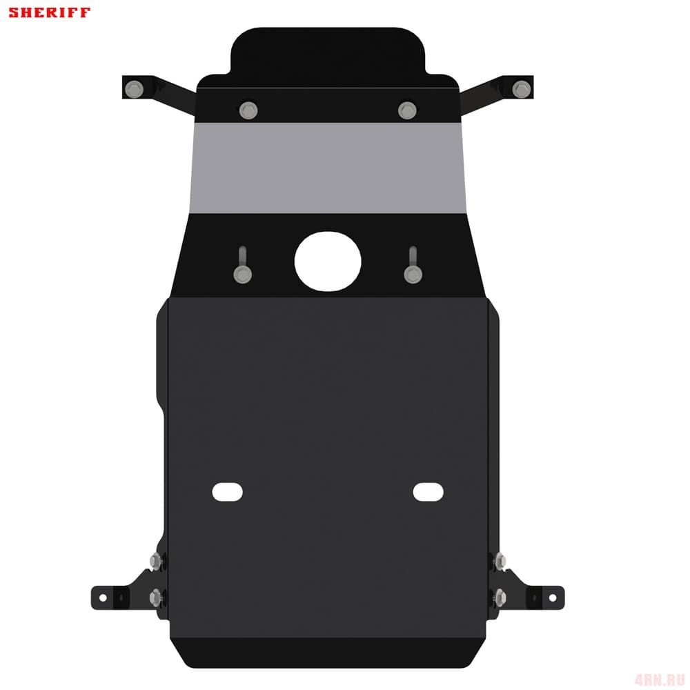 Защита картера Sheriff нужна для сохранности узлов и агрегатов, находящихся на днище авто. Она надежно защитит двигательный отсек вашей машины от повреждений. Также она защищает моторный отсек от влаги, грязи, и предусматривает наличие металлических крыльев, которые выполняют функцию пыльника.