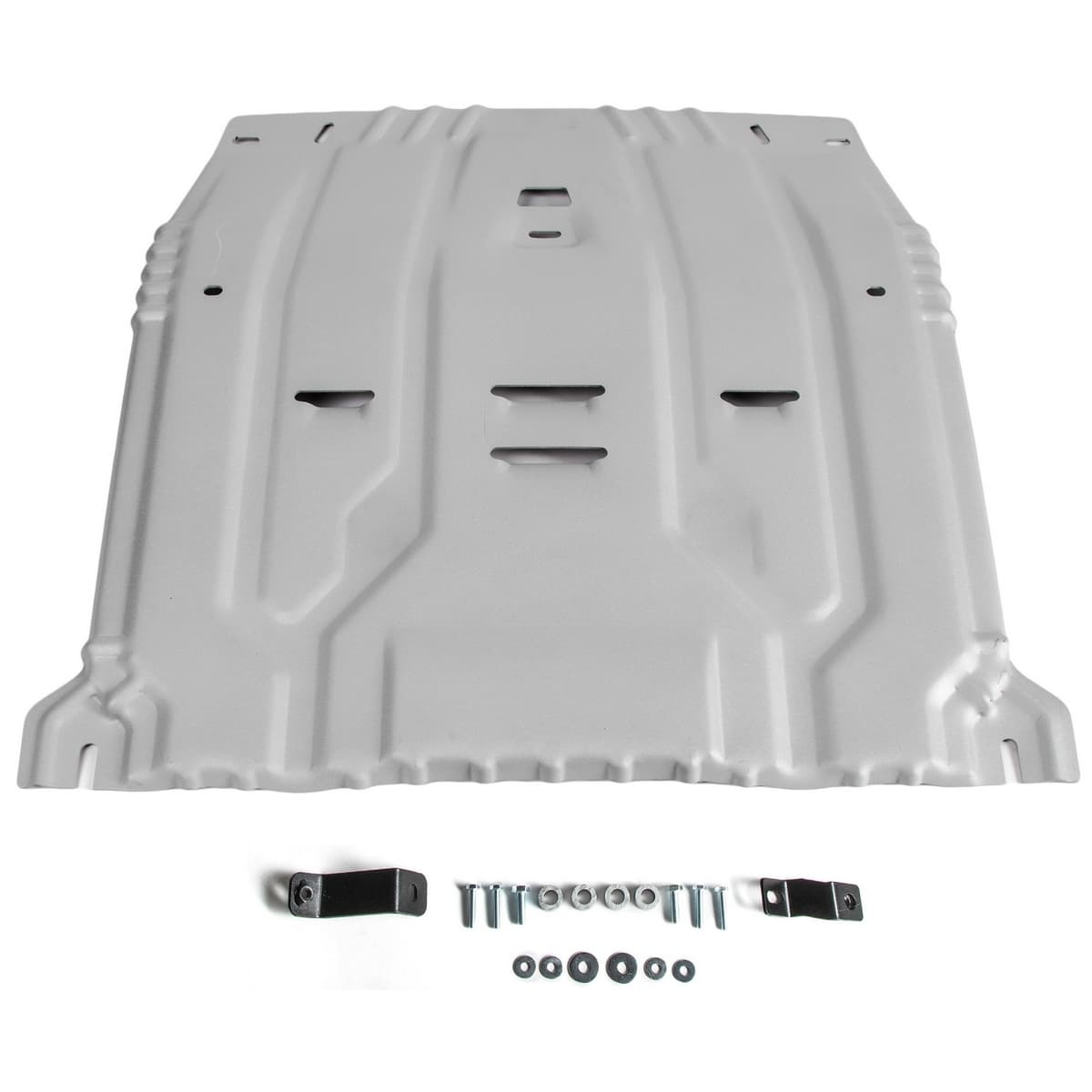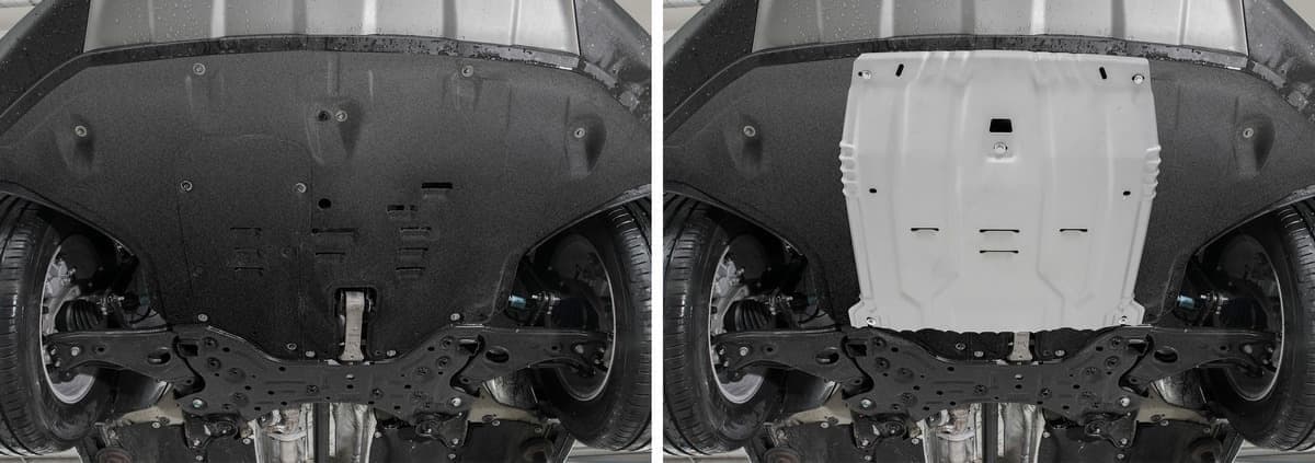 Стойкое порошковое окрашивание позволяет сохранить внешний вид, защитит от царапин, предотвратит коррозию. Также имеется утопленный крепеж для предотвращения срывов. Крепеж не образует с алюминием гальваническую пару. Защита спроектирована индивидуально для автомобиля, что позволяет устанавливать ее в штатные места без доработки кузова за 10 мин.