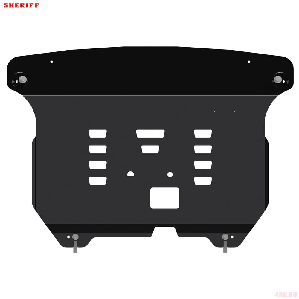 Защита картера Sheriff нужна для сохранности узлов и агрегатов, находящихся на днище авто. Она надежно защитит двигательный отсек вашей машины от повреждений. Также она защищает моторный отсек от влаги, грязи, и предусматривает наличие металлических крыльев, которые выполняют функцию пыльника.