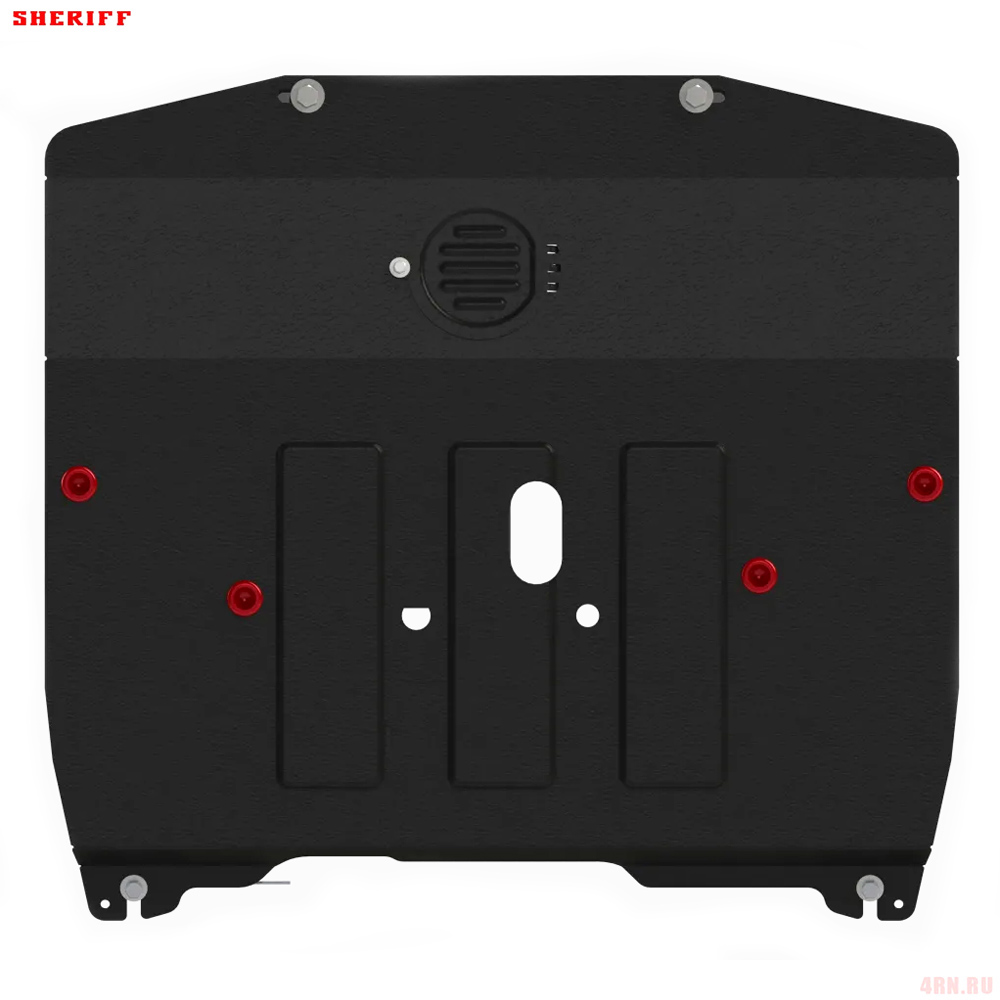 Защита картера Sheriff нужна для сохранности узлов и агрегатов, находящихся на днище авто. Она надежно защитит двигательный отсек вашей машины от повреждений. Также она защищает моторный отсек от влаги, грязи, и предусматривает наличие металлических крыльев, которые выполняют функцию пыльника.