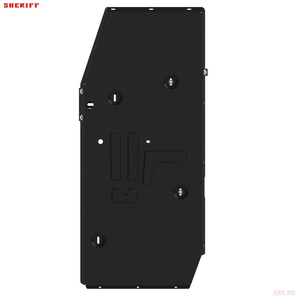 Защита картера Sheriff нужна для сохранности узлов и агрегатов, находящихся на днище авто. Она надежно защитит двигательный отсек вашей машины от повреждений. Также она защищает моторный отсек от влаги, грязи, и предусматривает наличие металлических крыльев, которые выполняют функцию пыльника.