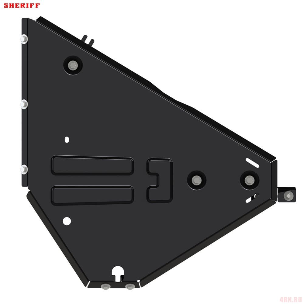 Защита картера Sheriff нужна для сохранности узлов и агрегатов, находящихся на днище авто. Она надежно защитит двигательный отсек вашей машины от повреждений. Также она защищает моторный отсек от влаги, грязи, и предусматривает наличие металлических крыльев, которые выполняют функцию пыльника.