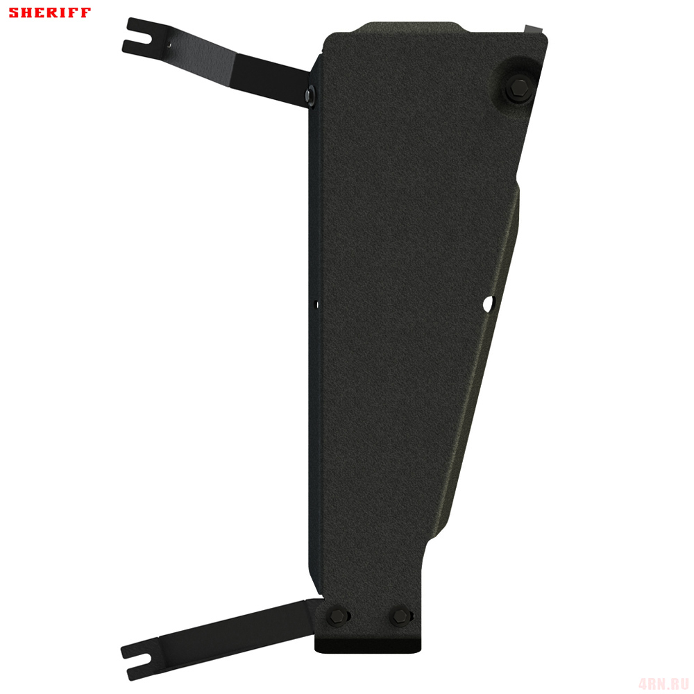 Защита картера Sheriff нужна для сохранности узлов и агрегатов, находящихся на днище авто. Она надежно защитит двигательный отсек вашей машины от повреждений. Также она защищает моторный отсек от влаги, грязи, и предусматривает наличие металлических крыльев, которые выполняют функцию пыльника.