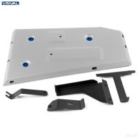 Стойкое порошковое окрашивание позволяет сохранить внешний вид, защитит от царапин, предотвратит коррозию. Также имеется утопленный крепеж для предотвращения срывов. Крепеж не образует с алюминием гальваническую пару. Защита спроектирована индивидуально для автомобиля, что позволяет устанавливать ее в штатные места без доработки кузова за 10 мин.