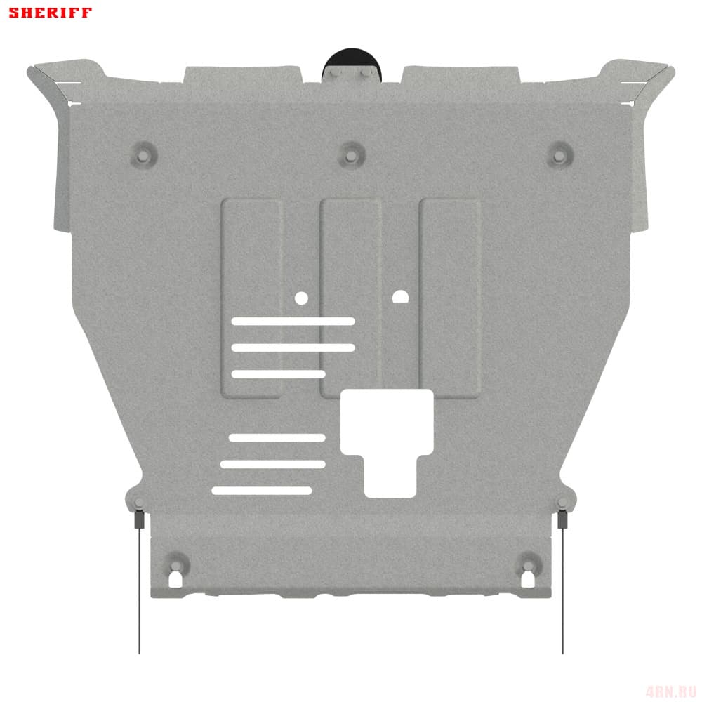 Защита картера Sheriff нужна для сохранности узлов и агрегатов, находящихся на днище авто. Она надежно защитит двигательный отсек вашего автомобиля от повреждений. Также она защищает моторный отсек от влаги и грязи, и предусматривает наличие металлических крыльев, которые выполняют функцию пыльника.