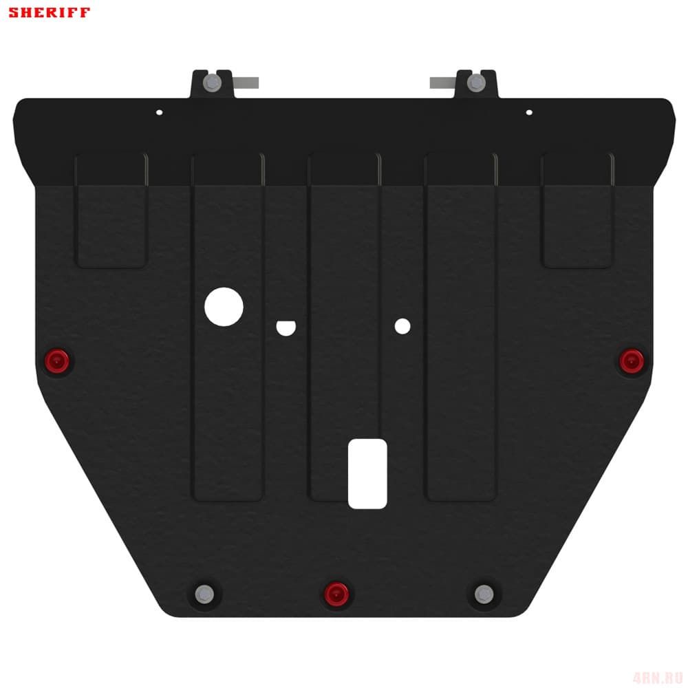 Защита картера Sheriff нужна для сохранности узлов и агрегатов, находящихся на днище авто. Она надежно защитит двигательный отсек вашей машины от повреждений. Также она защищает моторный отсек от влаги, грязи, и предусматривает наличие металлических крыльев, которые выполняют функцию пыльника.