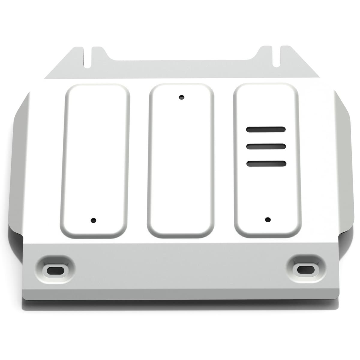 Стойкое порошковое окрашивание позволяет сохранить внешний вид, защитит от царапин, предотвратит коррозию. Также имеется утопленный крепеж для предотвращения срывов. Крепеж не образует с алюминием гальваническую пару. Защита спроектирована индивидуально для автомобиля, что позволяет устанавливать ее в штатные места без доработки кузова за 10 мин.