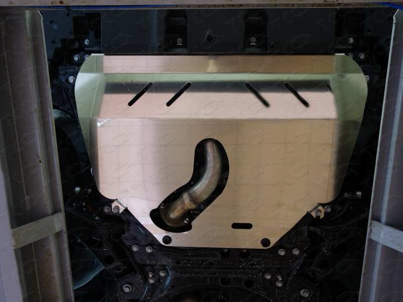 Алюминиевая защита двигателя артикул ZKTCC00115 от российского производителя ТСС. Подходит для Лексус НХ 2015-2019х годов выпуска. Защита состоит из одного листа и крепежа в комплекте, без отверстия для слива масла. Алюминия толщиной 4,0 мм достаточно для комфортного передвижения без опасений за автомобиль, вес ее 8 кг.