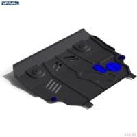 Порошковое окрашивание гарантирует долгий срок службы. А глубокий штамп увеличивает жесткость до 2,5 раз. Также имеется утопленный крепеж для предотвращения срывов. Качественная покраска защиты картера выдерживает 720 часов соляного тумана. Толщина изделия составляет 2-6 мм. Подштамповка в местах крепления предохраняет крепеж от срезания. Деталь спроектирована индивидуально для вашего автомобиля, что позволяет устанавливать ее в штатные места без доработки кузова за 10 мин.