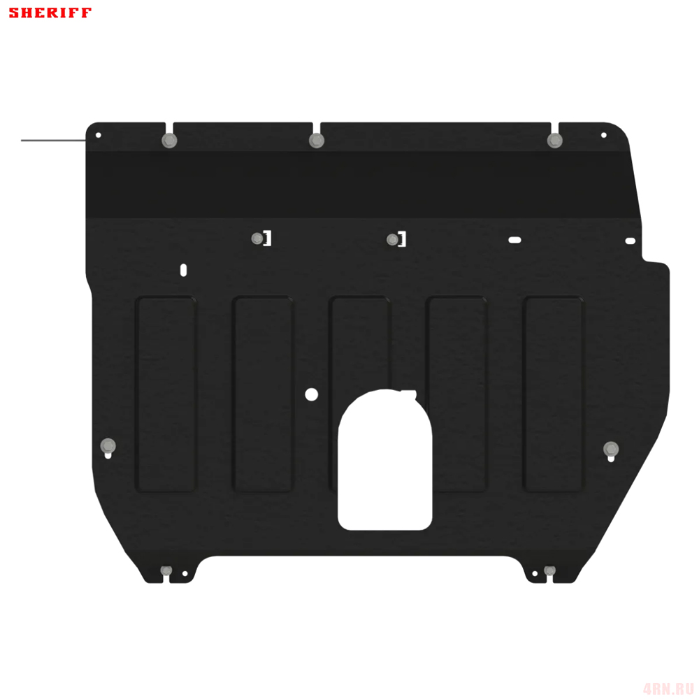 Защита картера Sheriff нужна для сохранности узлов и агрегатов, находящихся на днище авто. Она надежно защитит двигательный отсек вашей машины от повреждений. Также она защищает моторный отсек от влаги, грязи, и предусматривает наличие металлических крыльев, которые выполняют функцию пыльника.