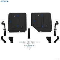 Порошковое окрашивание гарантирует долгий срок службы. А глубокий штамп увеличивает жесткость до 2,5 раз. Также имеется утопленный крепеж для предотвращения срывов. Качественная покраска защиты картера выдерживает 720 часов соляного тумана. Толщина изделия составляет 2-6 мм. Подштамповка в местах крепления предохраняет крепеж от срезания. Деталь спроектирована индивидуально для вашего автомобиля, что позволяет устанавливать ее в штатные места без доработки кузова за 10 мин.