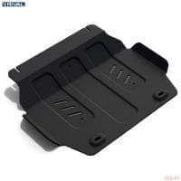 Порошковое окрашивание гарантирует долгий срок службы. А глубокий штамп увеличивает жесткость до 2,5 раз. Также имеется утопленный крепеж для предотвращения срывов. Качественная покраска защиты картера выдерживает 720 часов соляного тумана. Толщина изделия составляет 2-6 мм. Подштамповка в местах крепления предохраняет крепеж от срезания. Деталь спроектирована индивидуально для вашего автомобиля, что позволяет устанавливать ее в штатные места без доработки кузова за 10 мин.