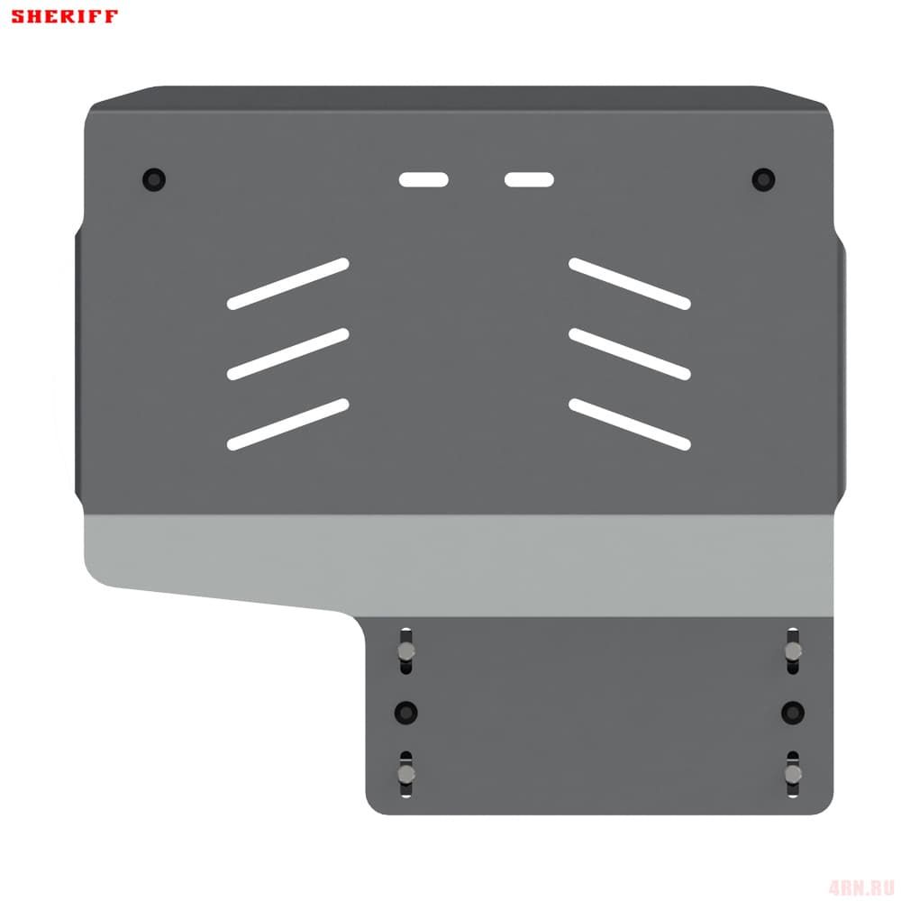 Защита картера Sheriff нужна для сохранности узлов и агрегатов, находящихся на днище авто. Она надежно защитит двигательный отсек вашего автомобиля от повреждений. Также она защищает моторный отсек от влаги и грязи, и предусматривает наличие металлических крыльев, которые выполняют функцию пыльника.