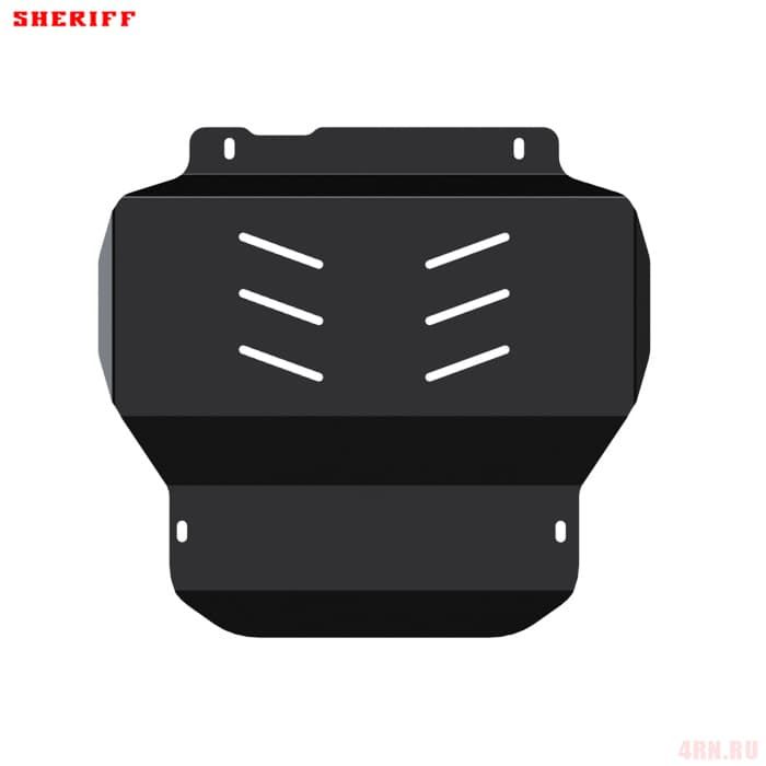Защита картера Sheriff нужна для сохранности узлов и агрегатов, находящихся на днище авто. Она надежно защитит двигательный отсек вашей машины от повреждений. Также она защищает моторный отсек от влаги, грязи, и предусматривает наличие металлических крыльев, которые выполняют функцию пыльника.