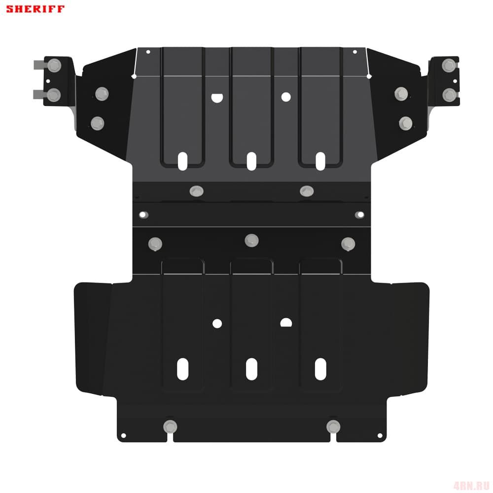 Защита картера Sheriff нужна для сохранности узлов и агрегатов, находящихся на днище авто. Она надежно защитит двигательный отсек вашей машины от повреждений. Также она защищает моторный отсек от влаги, грязи, и предусматривает наличие металлических крыльев, которые выполняют функцию пыльника.
