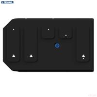 Порошковое окрашивание гарантирует долгий срок службы. А глубокий штамп увеличивает жесткость до 2,5 раз. Также имеется утопленный крепеж для предотвращения срывов. Качественная покраска защиты картера выдерживает 720 часов соляного тумана. Толщина изделия составляет 2-6 мм. Подштамповка в местах крепления предохраняет крепеж от срезания. Деталь спроектирована индивидуально для вашего автомобиля, что позволяет устанавливать ее в штатные места без доработки кузова за 10 мин.