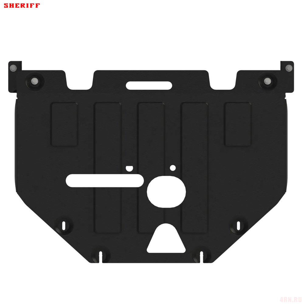 Защита картера Sheriff нужна для сохранности узлов и агрегатов, находящихся на днище авто. Она надежно защитит двигательный отсек вашей машины от повреждений. Также она защищает моторный отсек от влаги, грязи, и предусматривает наличие металлических крыльев, которые выполняют функцию пыльника.