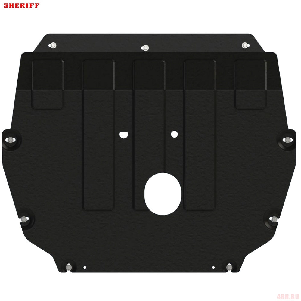 Защита картера Sheriff нужна для сохранности узлов и агрегатов, находящихся на днище авто. Она надежно защитит двигательный отсек вашей машины от повреждений. Также она защищает моторный отсек от влаги, грязи, и предусматривает наличие металлических крыльев, которые выполняют функцию пыльника.