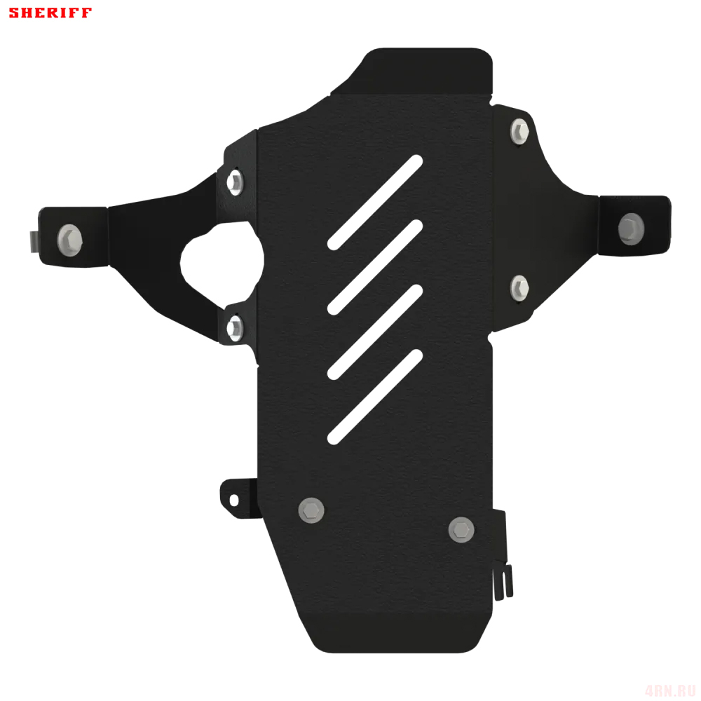 Защита картера Sheriff нужна для сохранности узлов и агрегатов, находящихся на днище авто. Она надежно защитит двигательный отсек вашей машины от повреждений. Также она защищает моторный отсек от влаги, грязи, и предусматривает наличие металлических крыльев, которые выполняют функцию пыльника.