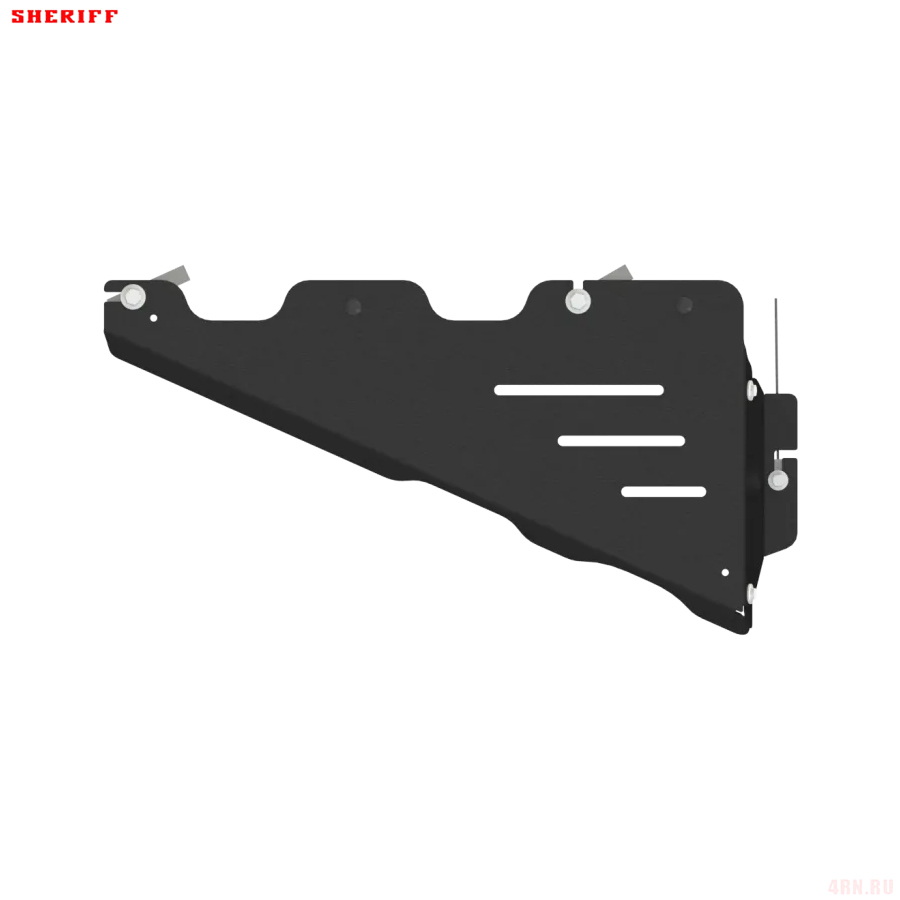 Защита картера Sheriff нужна для сохранности узлов и агрегатов, находящихся на днище авто. Она надежно защитит двигательный отсек вашей машины от повреждений. Также она защищает моторный отсек от влаги, грязи, и предусматривает наличие металлических крыльев, которые выполняют функцию пыльника.