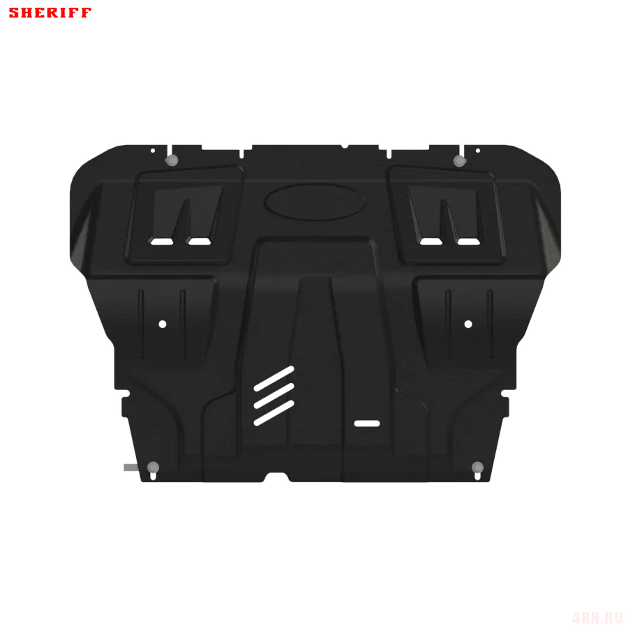 Защита картера Sheriff нужна для сохранности узлов и агрегатов, находящихся на днище авто. Она надежно защитит двигательный отсек вашей машины от повреждений. Также она защищает моторный отсек от влаги, грязи, и предусматривает наличие металлических крыльев, которые выполняют функцию пыльника.