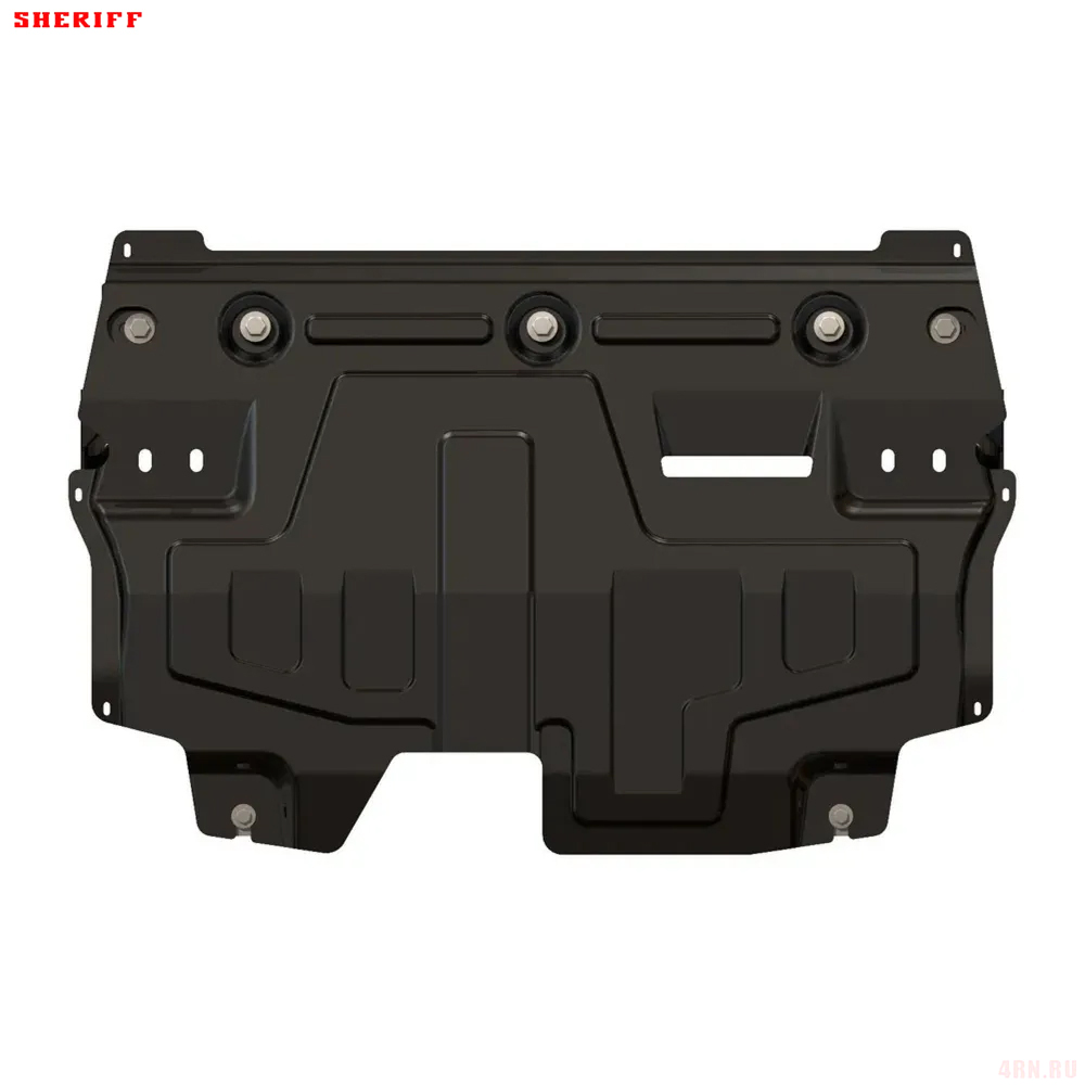 Защита картера Sheriff нужна для сохранности узлов и агрегатов, находящихся на днище авто. Она надежно защитит двигательный отсек вашей машины от повреждений. Также она защищает моторный отсек от влаги, грязи, и предусматривает наличие металлических крыльев, которые выполняют функцию пыльника.