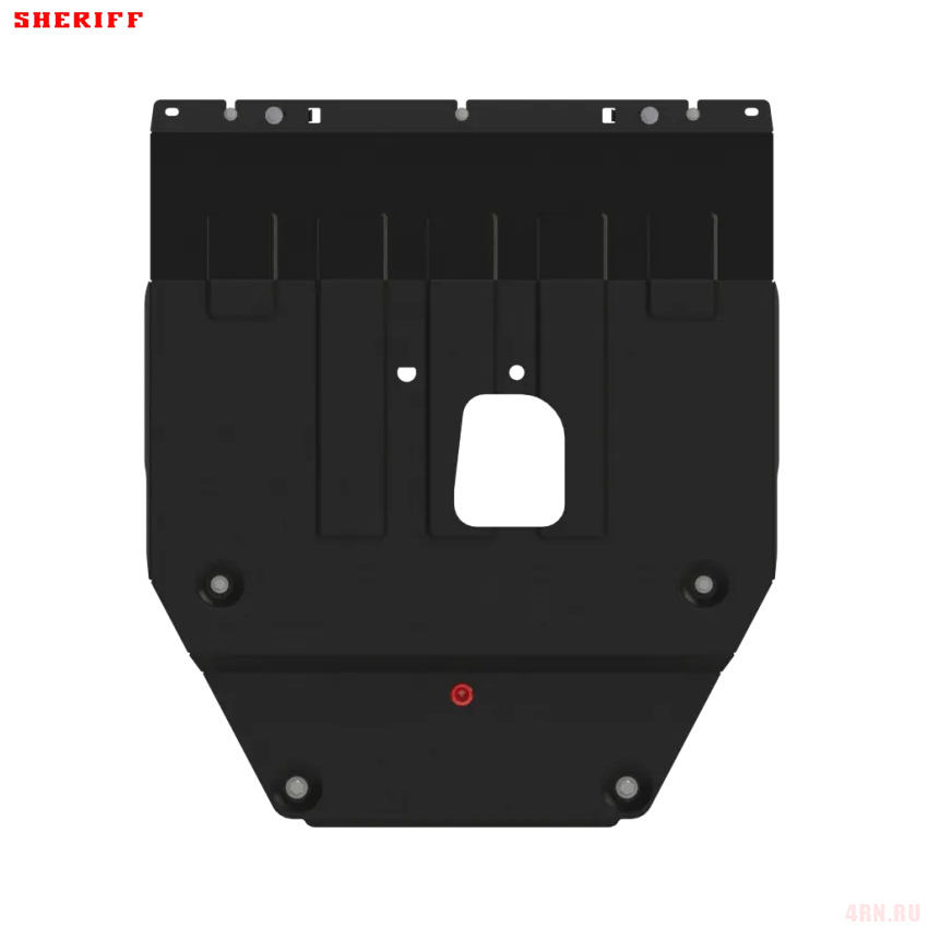 Защита картера Sheriff нужна для сохранности узлов и агрегатов, находящихся на днище авто. Она надежно защитит двигательный отсек вашей машины от повреждений. Также она защищает моторный отсек от влаги, грязи, и предусматривает наличие металлических крыльев, которые выполняют функцию пыльника.
