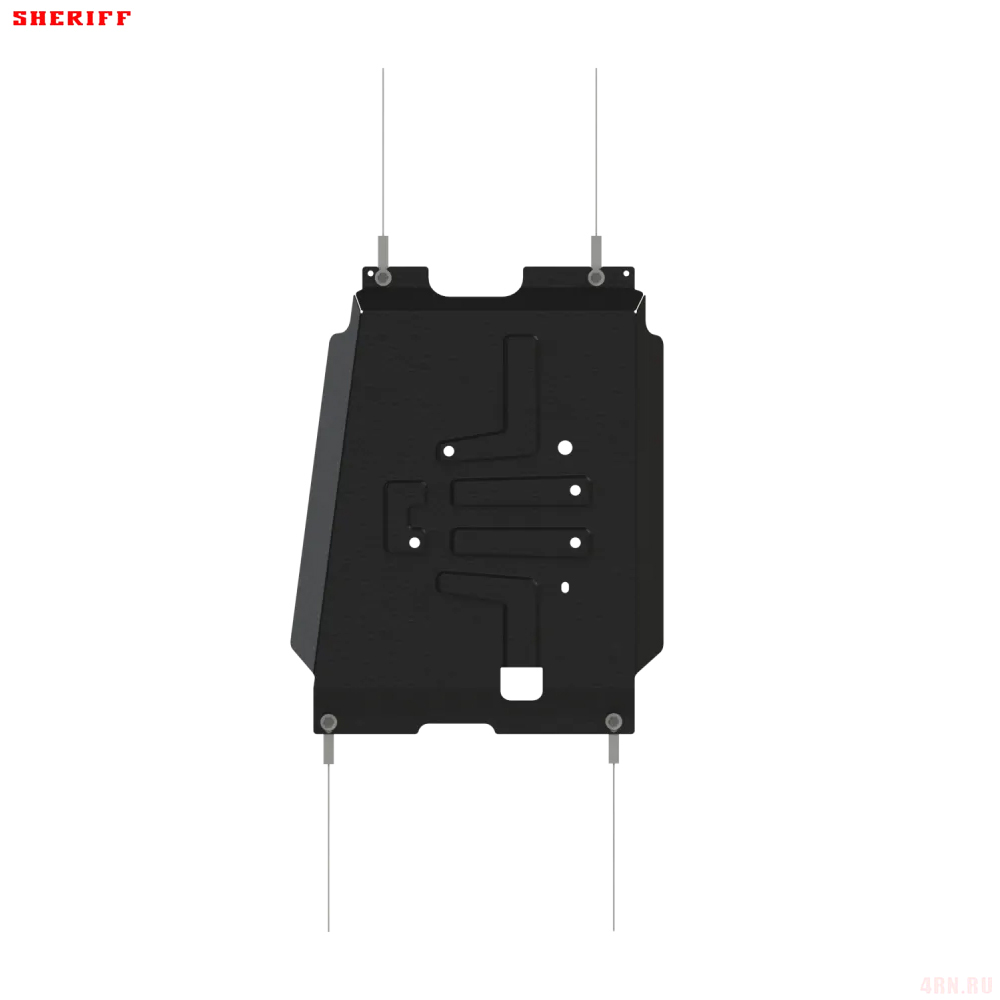Защита картера Sheriff нужна для сохранности узлов и агрегатов, находящихся на днище авто. Она надежно защитит двигательный отсек вашей машины от повреждений. Также она защищает моторный отсек от влаги, грязи, и предусматривает наличие металлических крыльев, которые выполняют функцию пыльника.