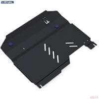 Порошковое окрашивание гарантирует долгий срок службы. А глубокий штамп увеличивает жесткость до 2,5 раз. Также имеется утопленный крепеж для предотвращения срывов. Качественная покраска защиты картера выдерживает 720 часов соляного тумана. Толщина изделия составляет 2-6 мм. Подштамповка в местах крепления предохраняет крепеж от срезания. Деталь спроектирована индивидуально для вашего автомобиля, что позволяет устанавливать ее в штатные места без доработки кузова за 10 мин.