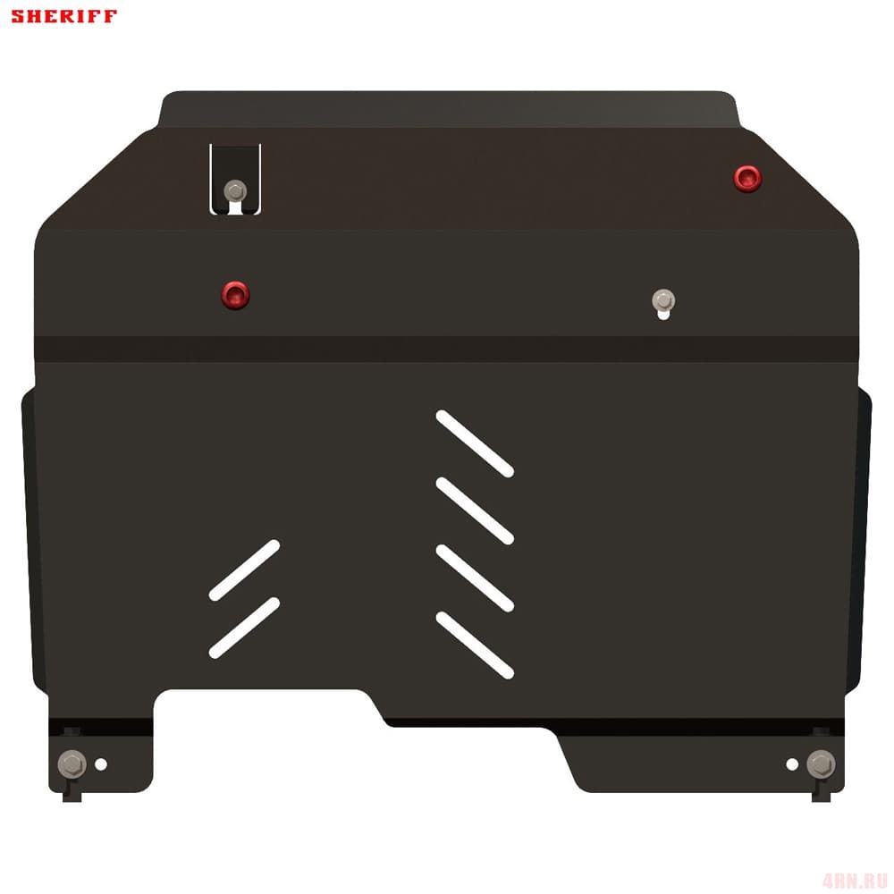 Защита картера Sheriff нужна для сохранности узлов и агрегатов, находящихся на днище авто. Она надежно защитит двигательный отсек вашей машины от повреждений. Также она защищает моторный отсек от влаги, грязи, и предусматривает наличие металлических крыльев, которые выполняют функцию пыльника.