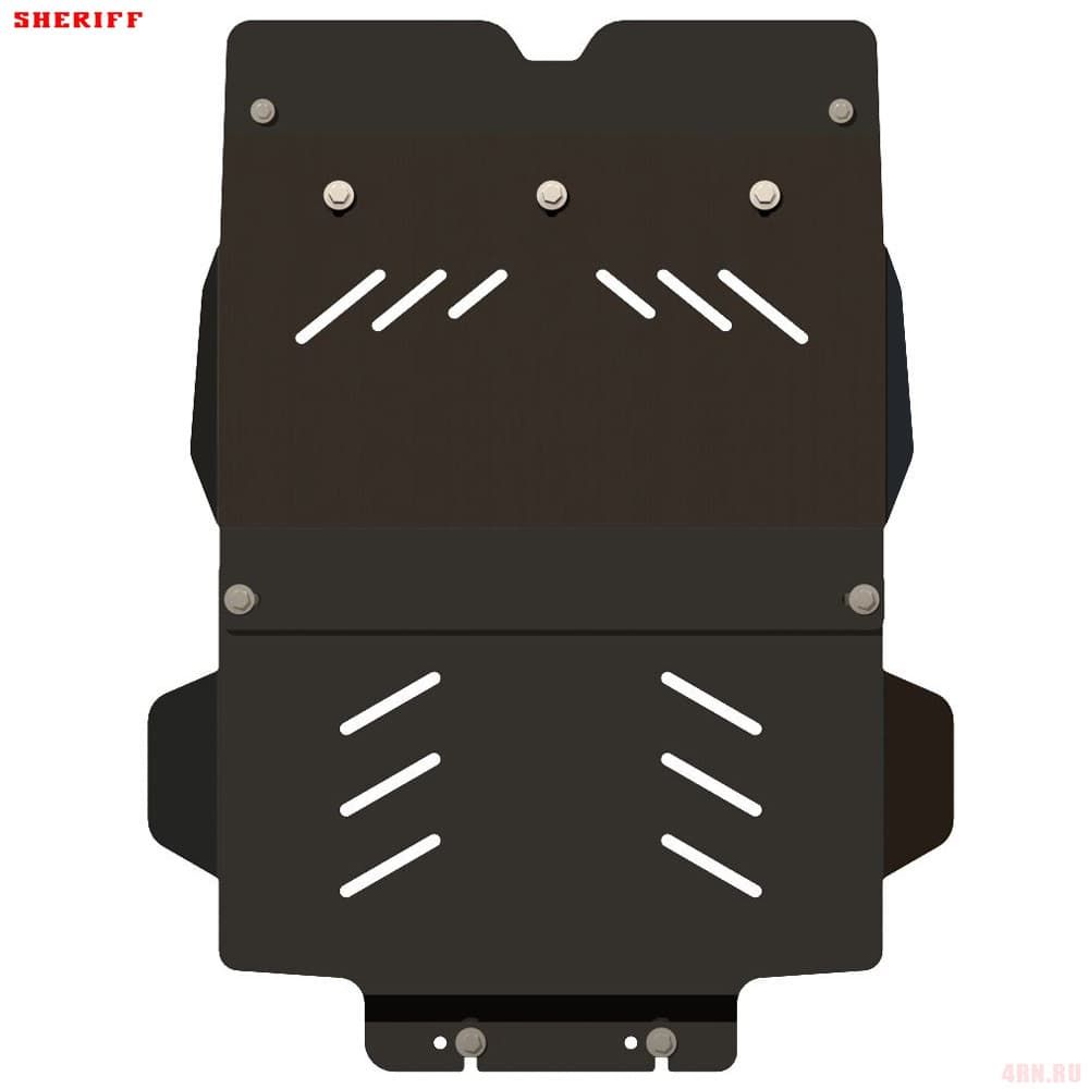 Защита картера Sheriff нужна для сохранности узлов и агрегатов, находящихся на днище авто. Она надежно защитит двигательный отсек вашей машины от повреждений. Также она защищает моторный отсек от влаги, грязи, и предусматривает наличие металлических крыльев, которые выполняют функцию пыльника.