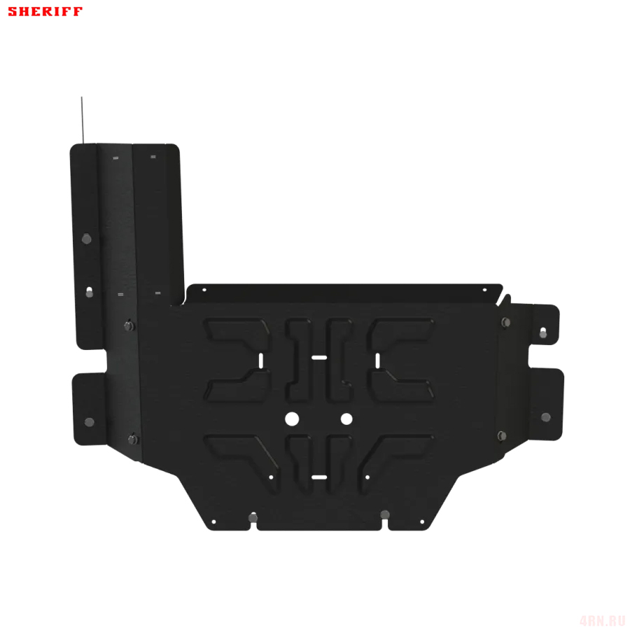 Защита картера Sheriff нужна для сохранности узлов и агрегатов, находящихся на днище авто. Она надежно защитит двигательный отсек вашей машины от повреждений. Также она защищает моторный отсек от влаги, грязи, и предусматривает наличие металлических крыльев, которые выполняют функцию пыльника.