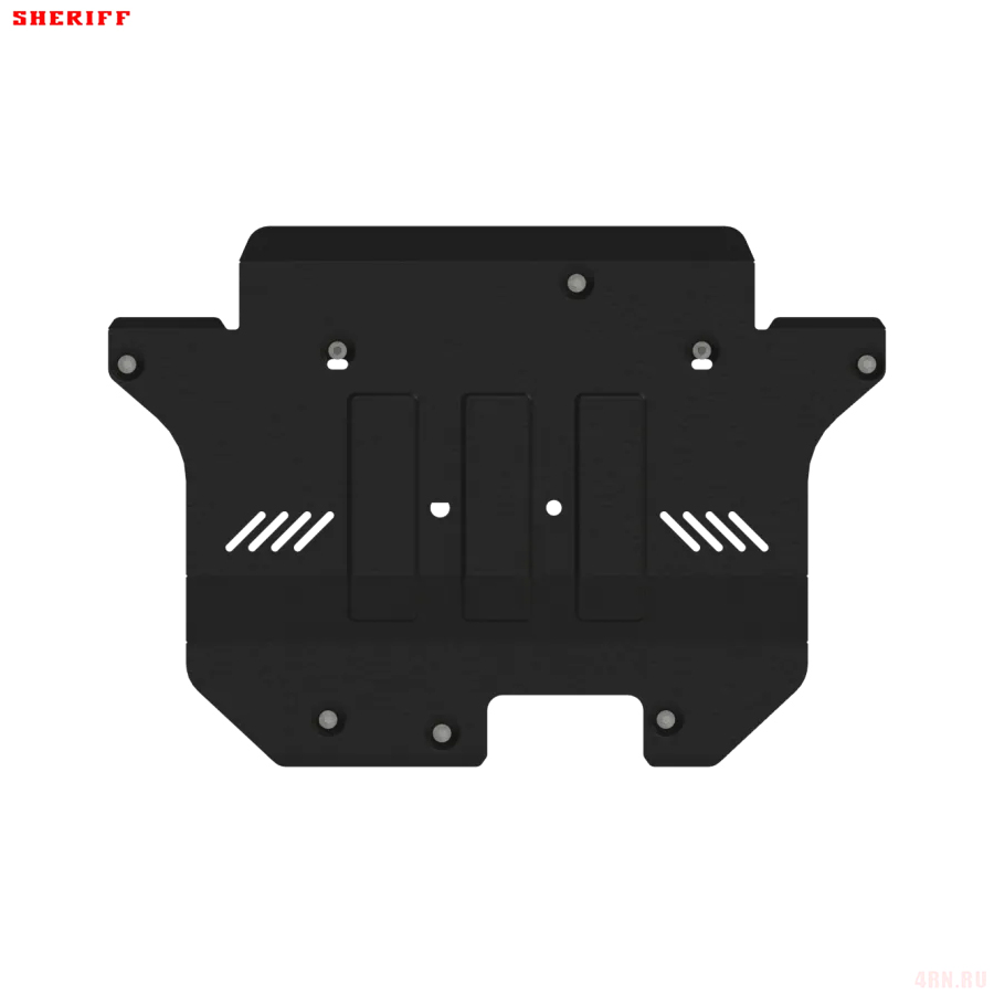 Защита картера Sheriff нужна для сохранности узлов и агрегатов, находящихся на днище авто. Она надежно защитит двигательный отсек вашей машины от повреждений. Также она защищает моторный отсек от влаги, грязи, и предусматривает наличие металлических крыльев, которые выполняют функцию пыльника.